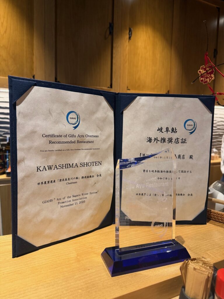 岐阜県の鮎の海外推奨店に選ばれました。