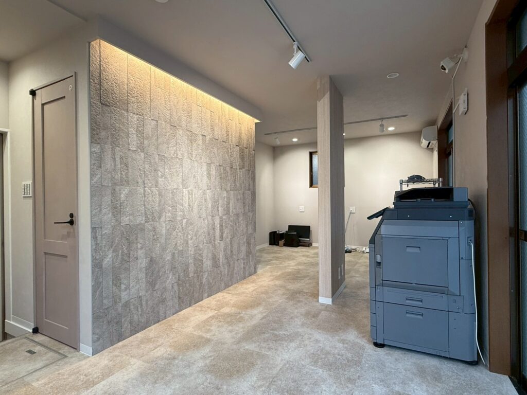 内装は素材感を活かしたナチュラルテイストで統一し、パナソニック照明による間接的な光の演出で、落ち着きと創造性を両立する空間を実現しました。