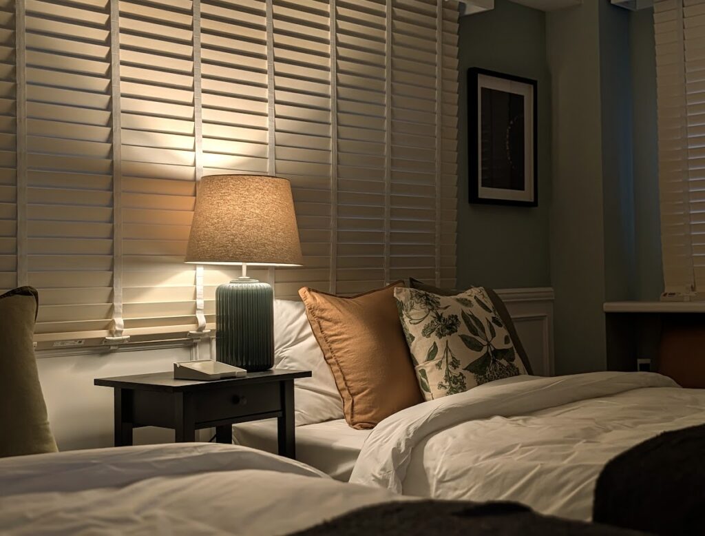 室内は落ち着いたカラーと温かみのある照明で統一され、ブティックホテルのような空間デザインが特徴です。ベッドルームには世界中のホテルで採用されているSimmons(シモンズ)マットレスを採用し、快適な睡眠環境を整えています。
