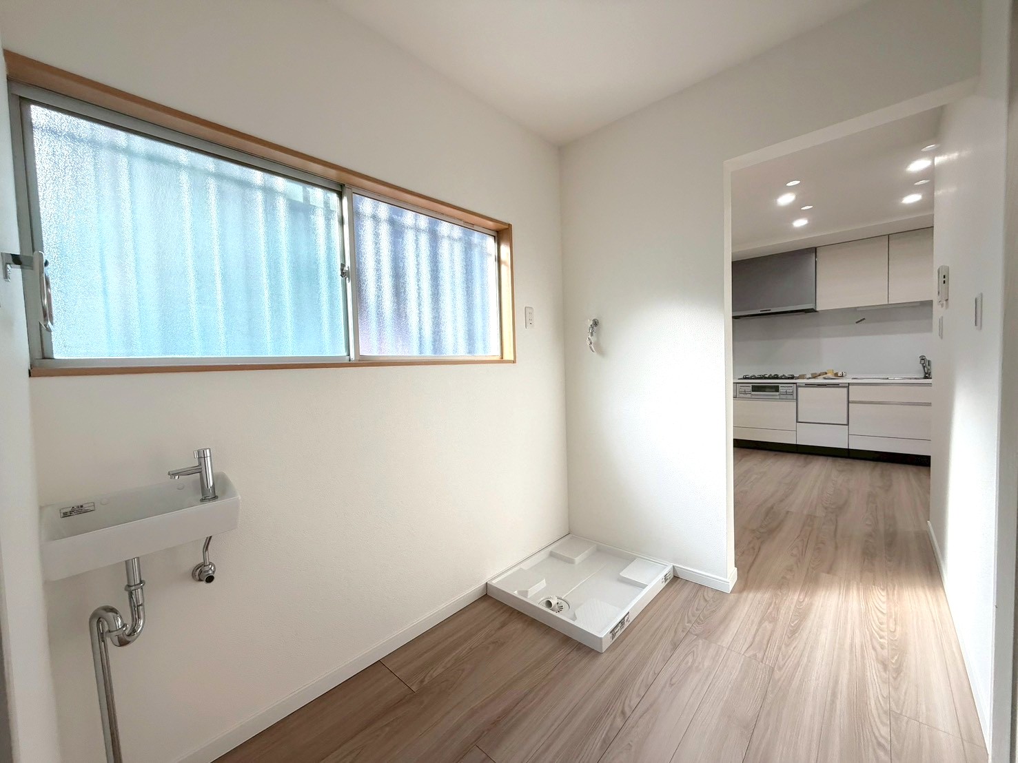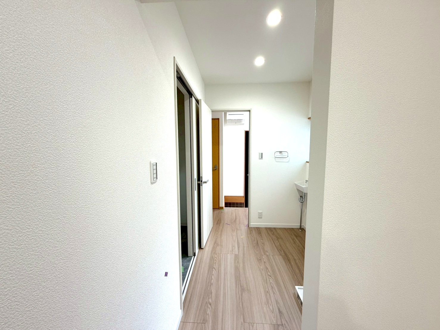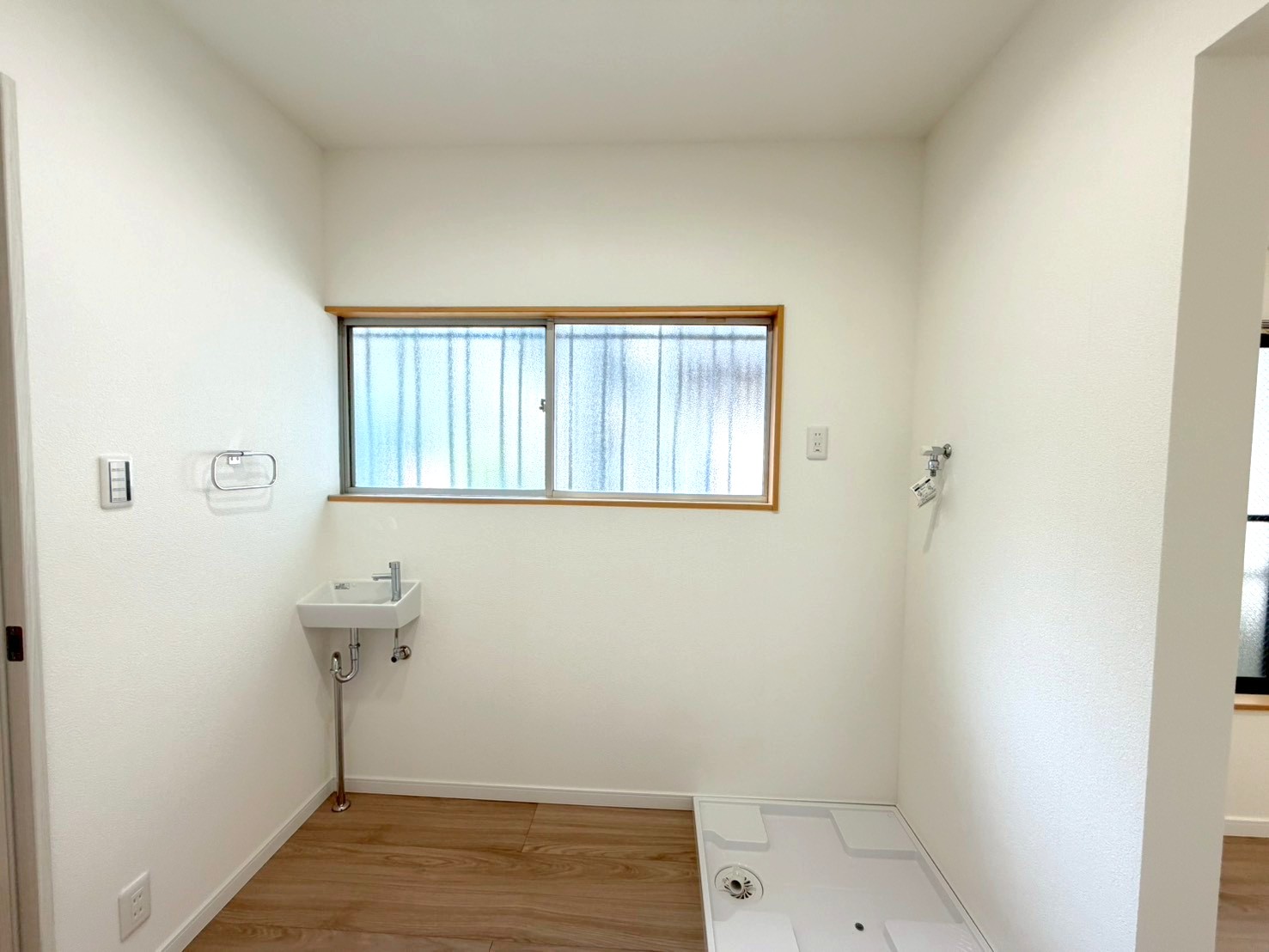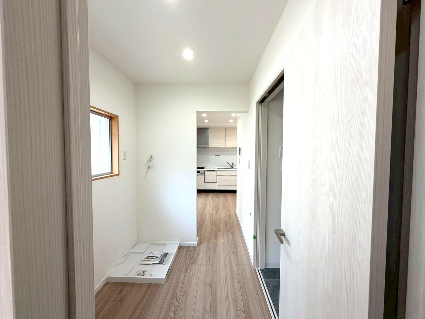 玄関とDKの間に洗面と洗濯機置き場がございます。(R8年3月28日撮影)