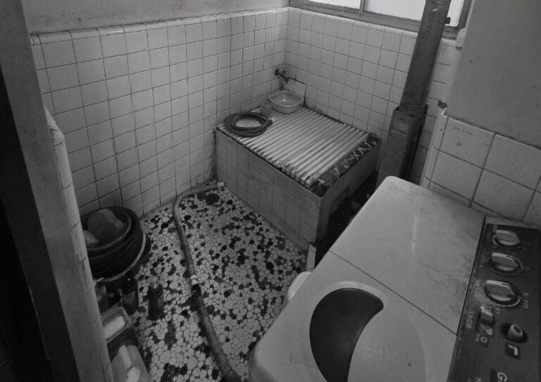 タイル貼りの浴室内に浴槽と洗濯機が隣接して置かれており、脱衣スペースの確保も難しい状態でした。タイルや設備の経年劣化も進んでおり、日々の家事動線やお手入れの面でも大幅な刷新が求められていました。